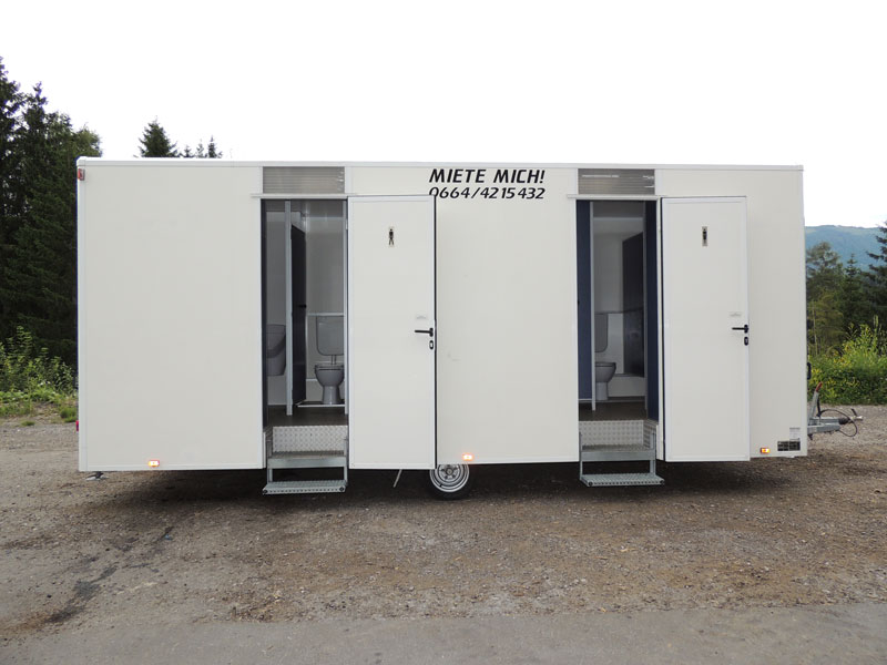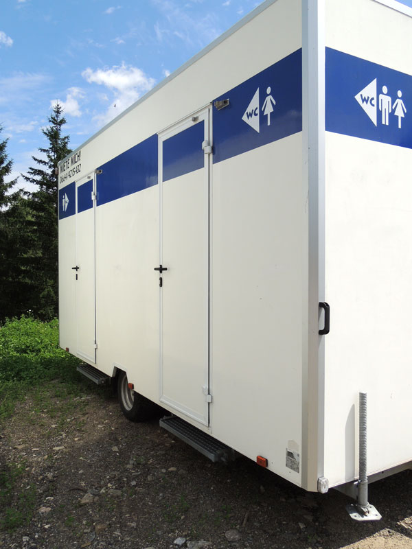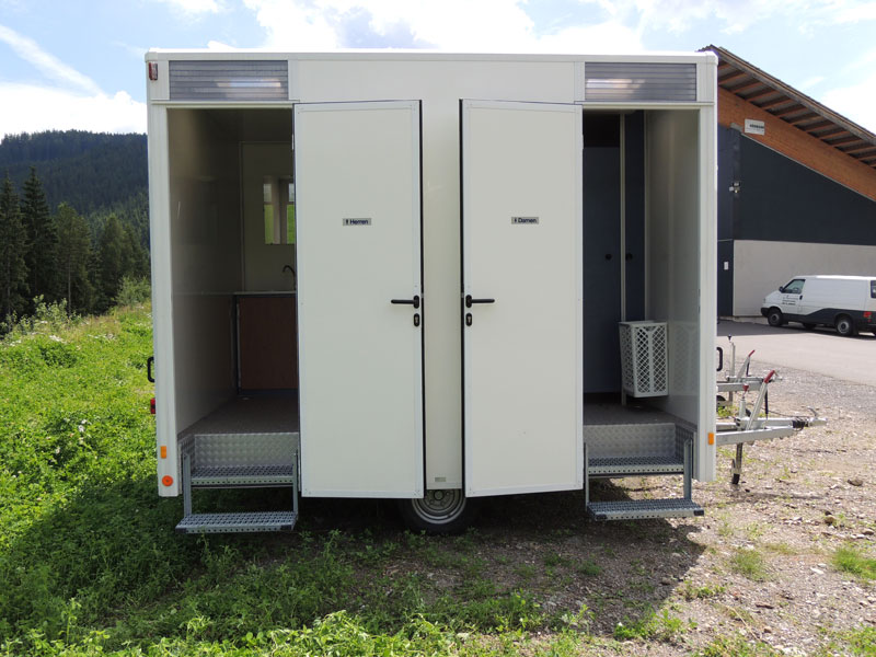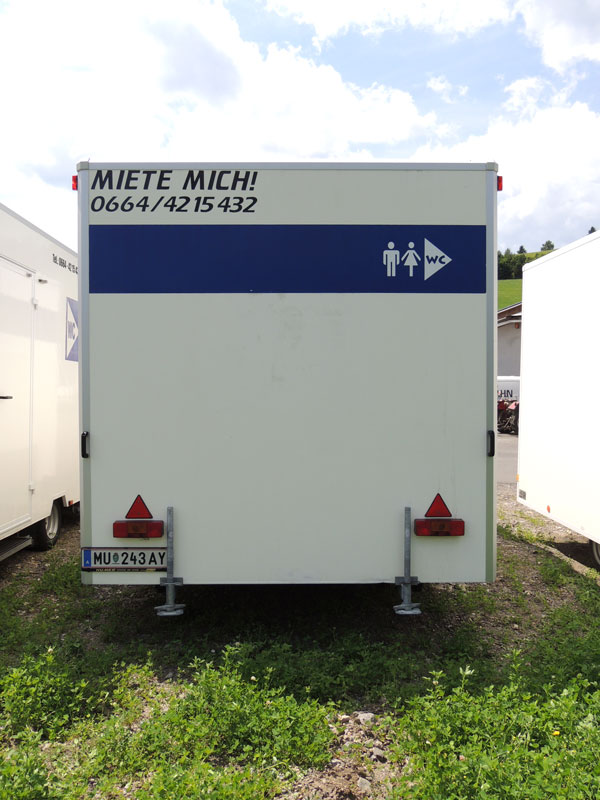Auch bei den WC Anhängern vom „Franz Moser Schank & Eventservice“ haben Sie die Möglichkeit, den für Ihre Veranstaltung passenden WC Anhänger zu mieten.